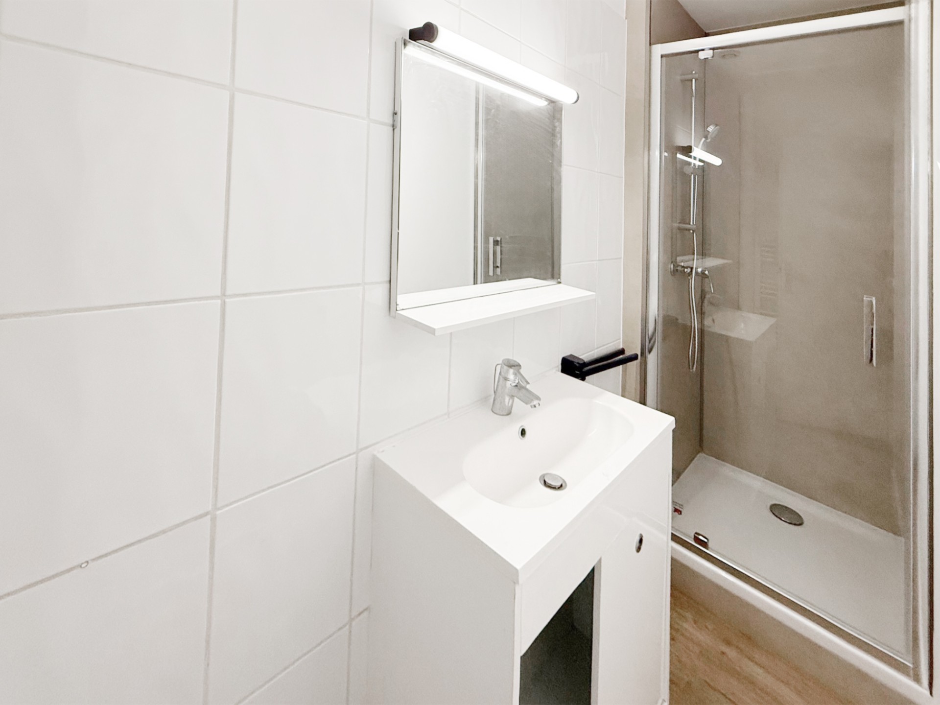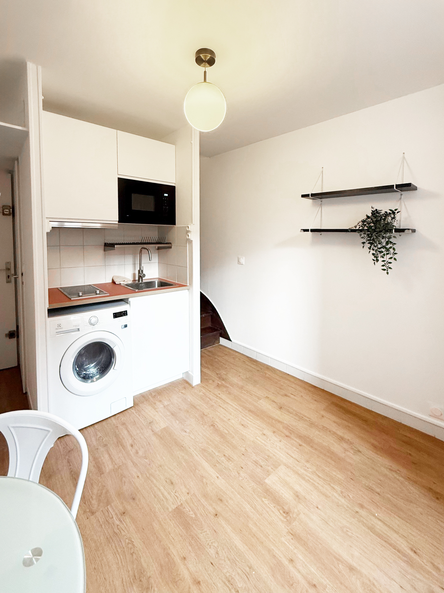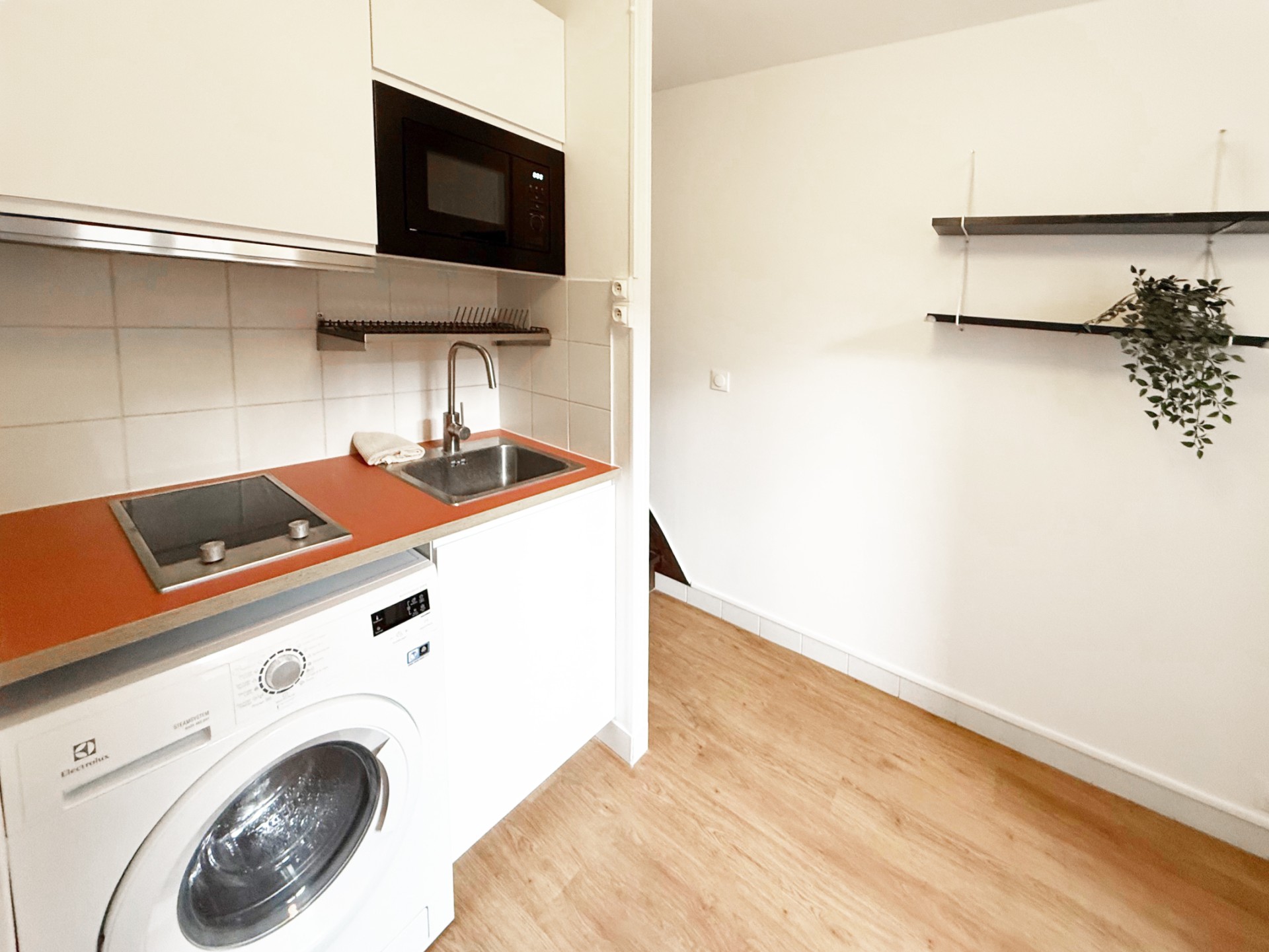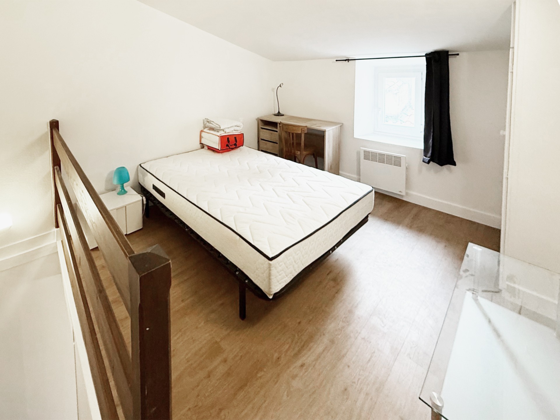 Grand Rue - Agréable appartement T1 de 21,50 m² habitable comprenant une pièce principale avec un coin cuisine équipée et aménagée (plaque cuisson, micro-ondes, réfrigérateur et machine à laver), un wc. A l'étage : un coin chambre avec bureau et rangement, une salle d'eau.