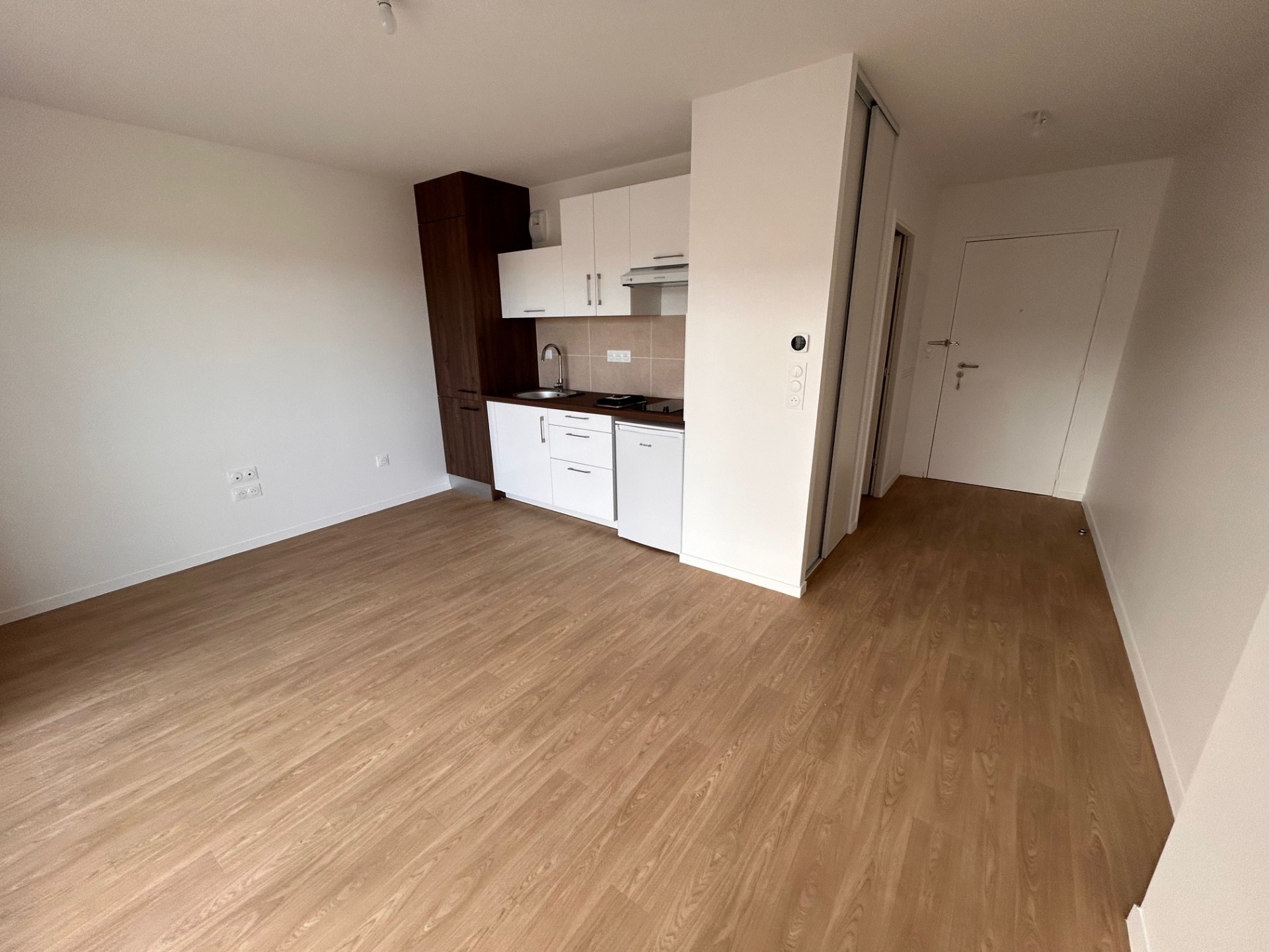 Proche CHU et facultés, appartement T1 de 25,40 m² habitable comprenant une entrée avec placard, une pièce principale avec une cuisine ouverte et équipée (plaque cuisson, hotte, réfrigérateur TOp, placards), et une salle d'eau avec wc. Une terrasse et un emplacement de parking aérien.