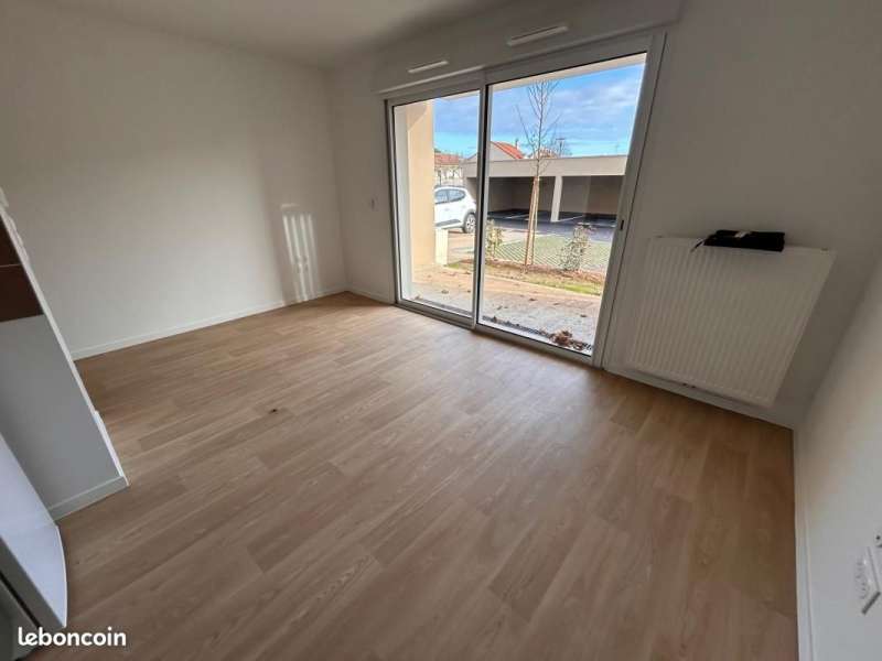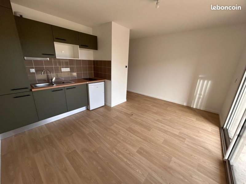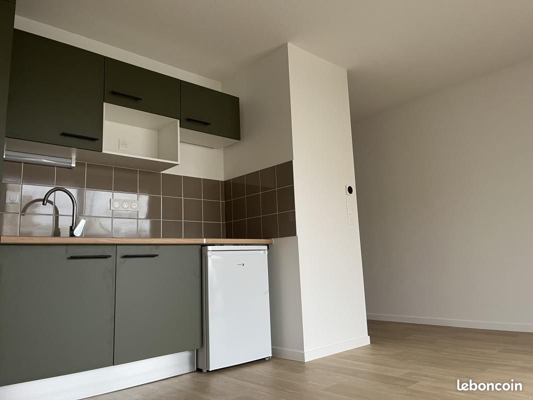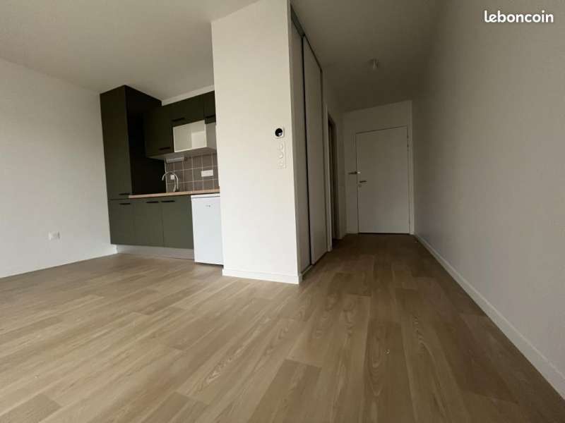 Dans immeuble neuf et sécurisé, appartement T1 donnant sur une terrasse avec jardinet, comprenant une entrée avec placard, une pièce principale donnant sur une cuisine équipée et aménagée (plaque cuisson, hotte et réfrigérateur top), une salle d'eau avec wc. Un emplacement de parking privatif.