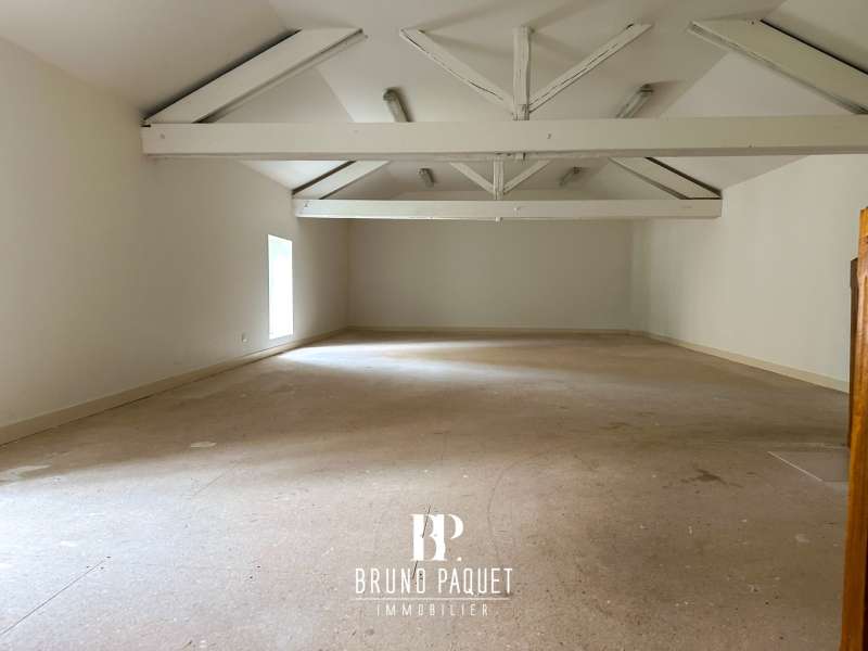 Cette maison comprend au rez-de-chaussée : Entrée, une pièce de 38 m2 avec coin cuisine, réserve, wc, une autre pièce. Au 1er étage : un palier de 64 m2 à aménager, wc, un bureau.