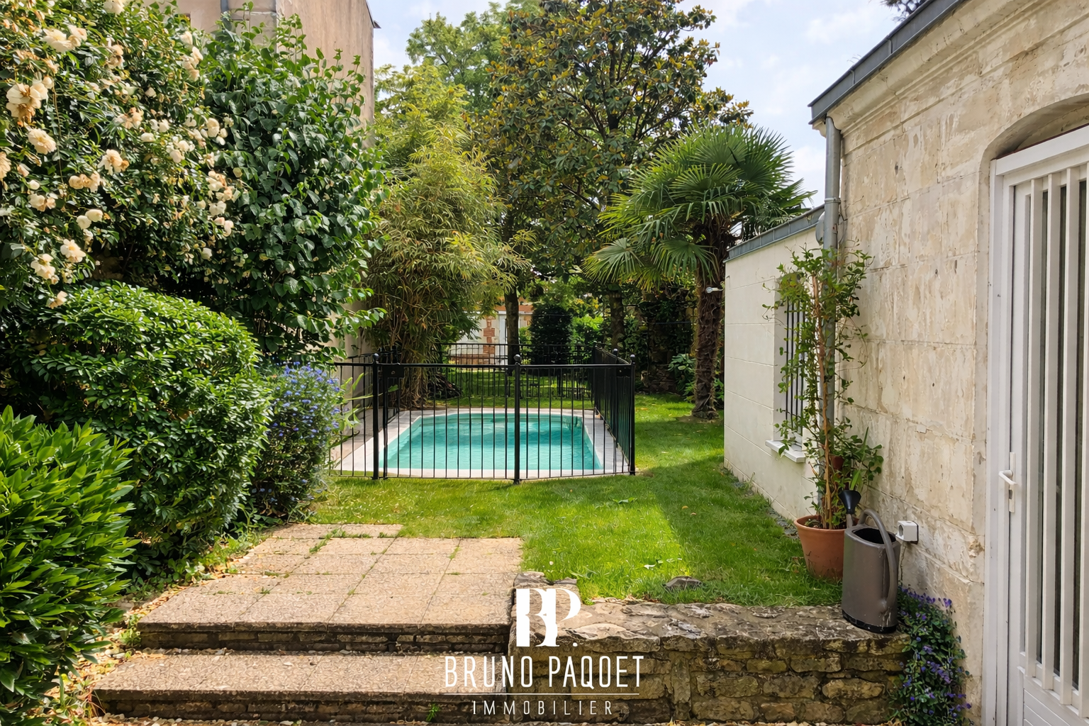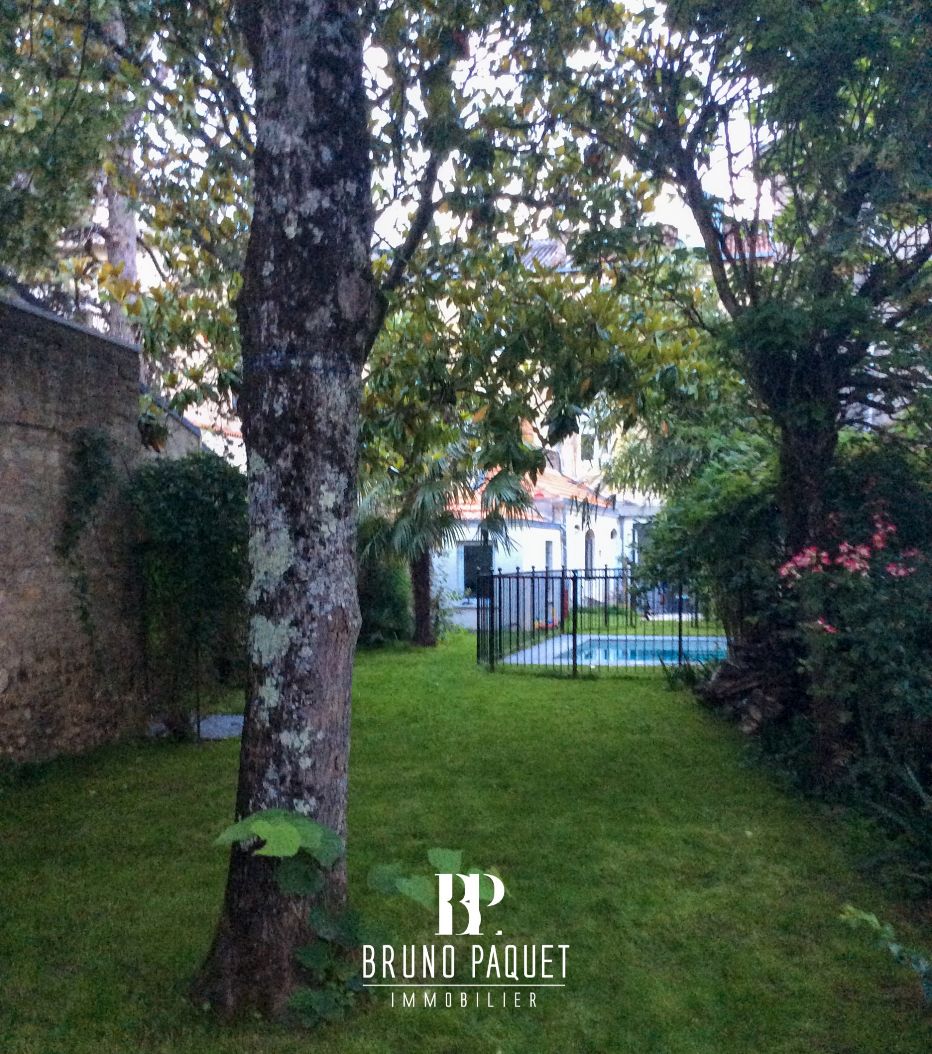 À l'extérieur, véritable privilège en hyper centre, un jardin arboré et intimiste accueille une piscine, offrant un cadre de vie rare et recherché en plein cœur de ville. Une dépendance en fond de jardin.