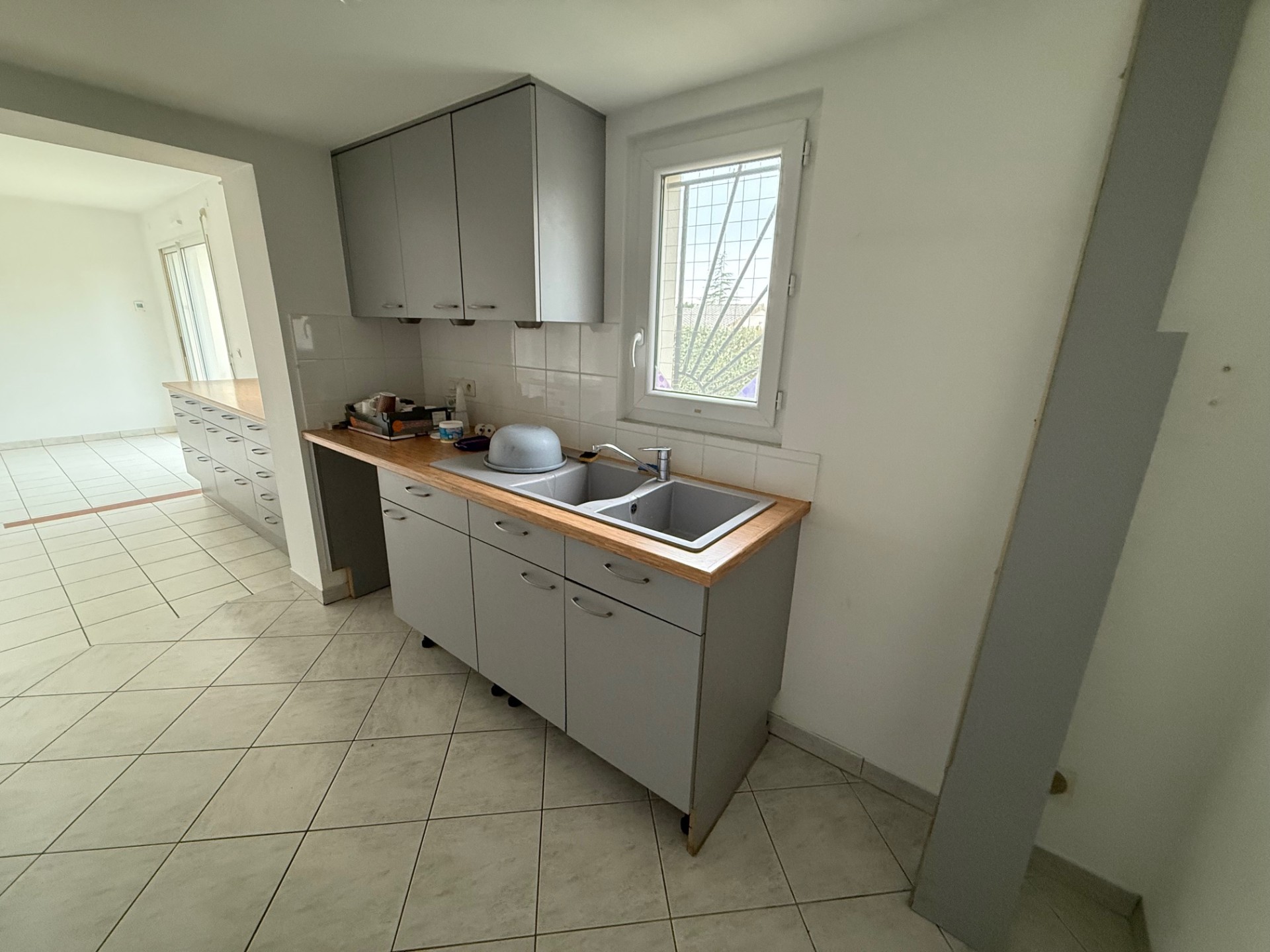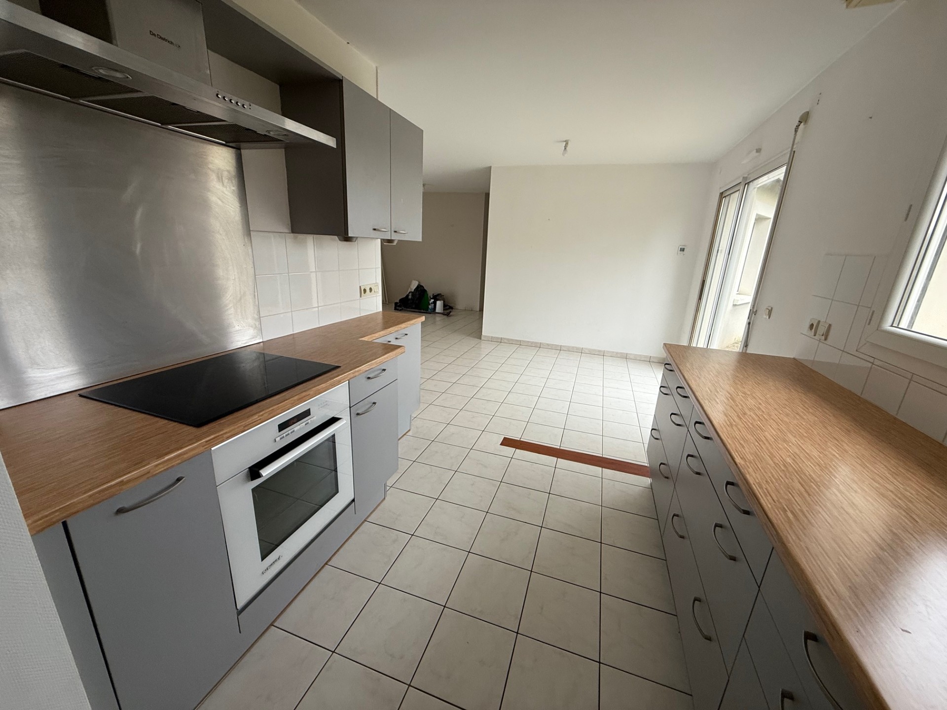 BUXEROLLES - Très belle maison de plain-pied offrant une grande pièce principale donnant sur une cuisine équipée et aménagée (plaque cuisson, four, hotte et nombreux rangements), une arrière-cuisine.