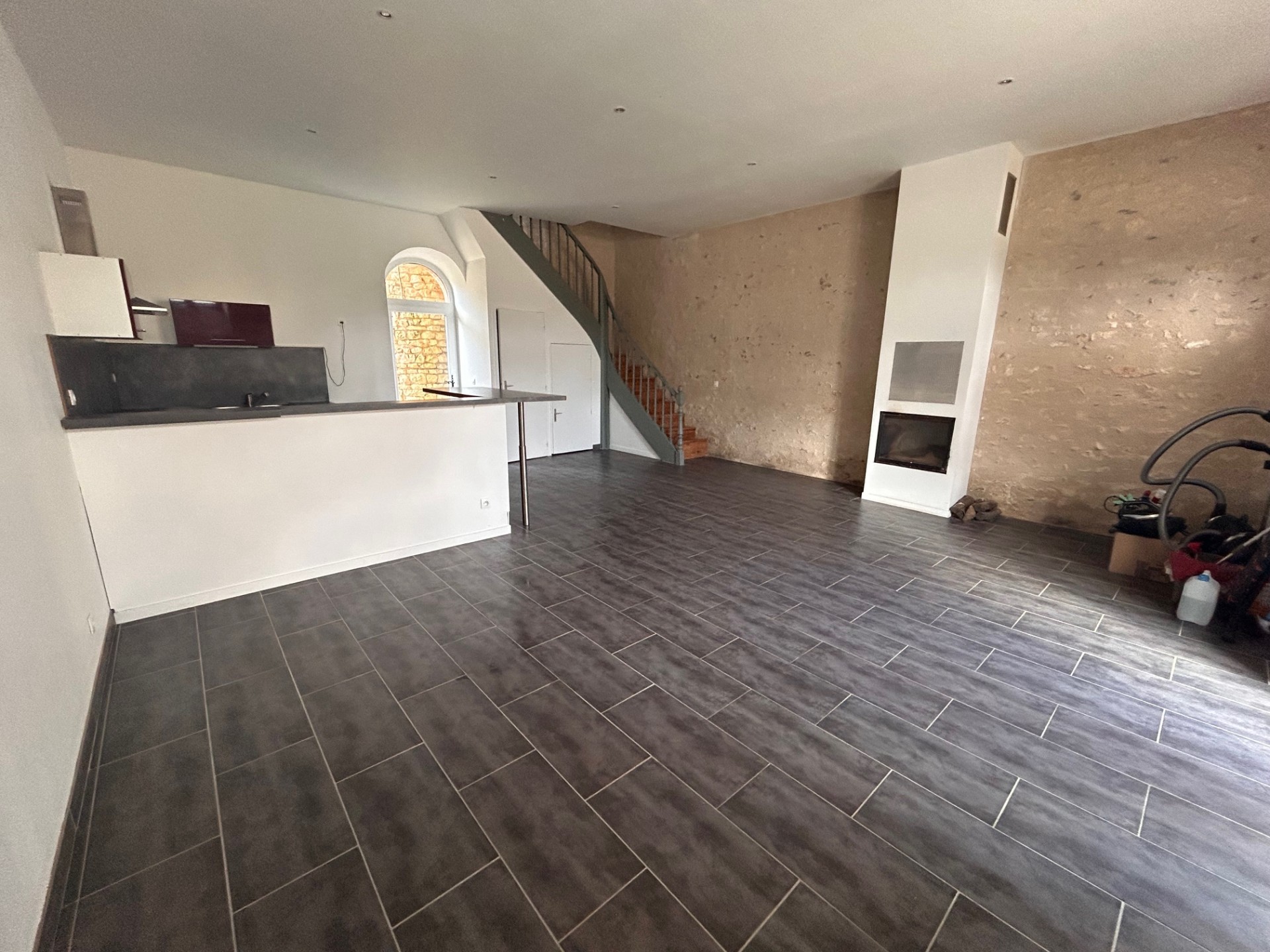 BIGNOUX - Appartement T3 d'environ 91.97 m² habitable, comprenant une grande pièce principale donnant sur une cuisine ouverte et aménagée. A l'étage : palier, deux chambres dont une avec placard et une salle d'eau avec wc et rangement. Possibilité de stationnement. Chauffage électrique et insert. Loyer : 675,00 euros Provisions pour charges : 25,00 euros (eau froide et taxe d'ordures ménagères) Dépôt de garantie : 675,00 euros Honoraire de location : 800,00 euros (dont honoraire d'état des lieux)