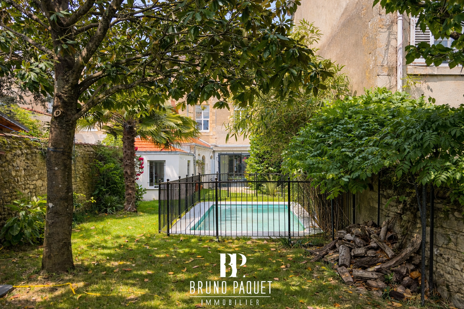 À l'extérieur, véritable privilège en hyper centre, un jardin arboré et intimiste accueille une piscine, offrant un cadre de vie rare et recherché en plein cœur de ville. Une dépendance en fond de jardin.