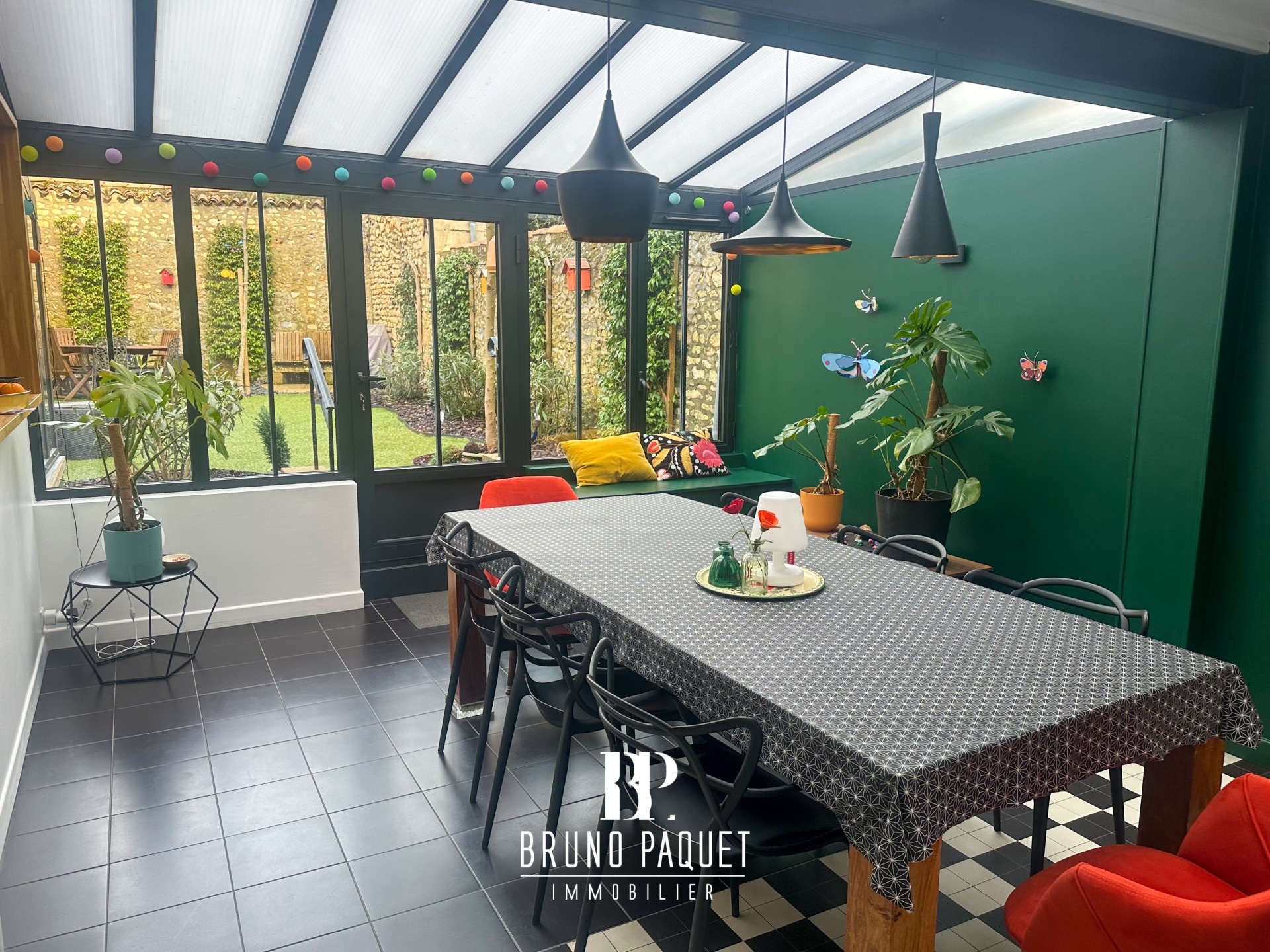 Au rez-de-chaussée : Entrée, salon, séjour, salle à manger lumineuse, cuisine aménagée et wc. L’ensemble s’ouvre sur un charmant jardin intimiste.