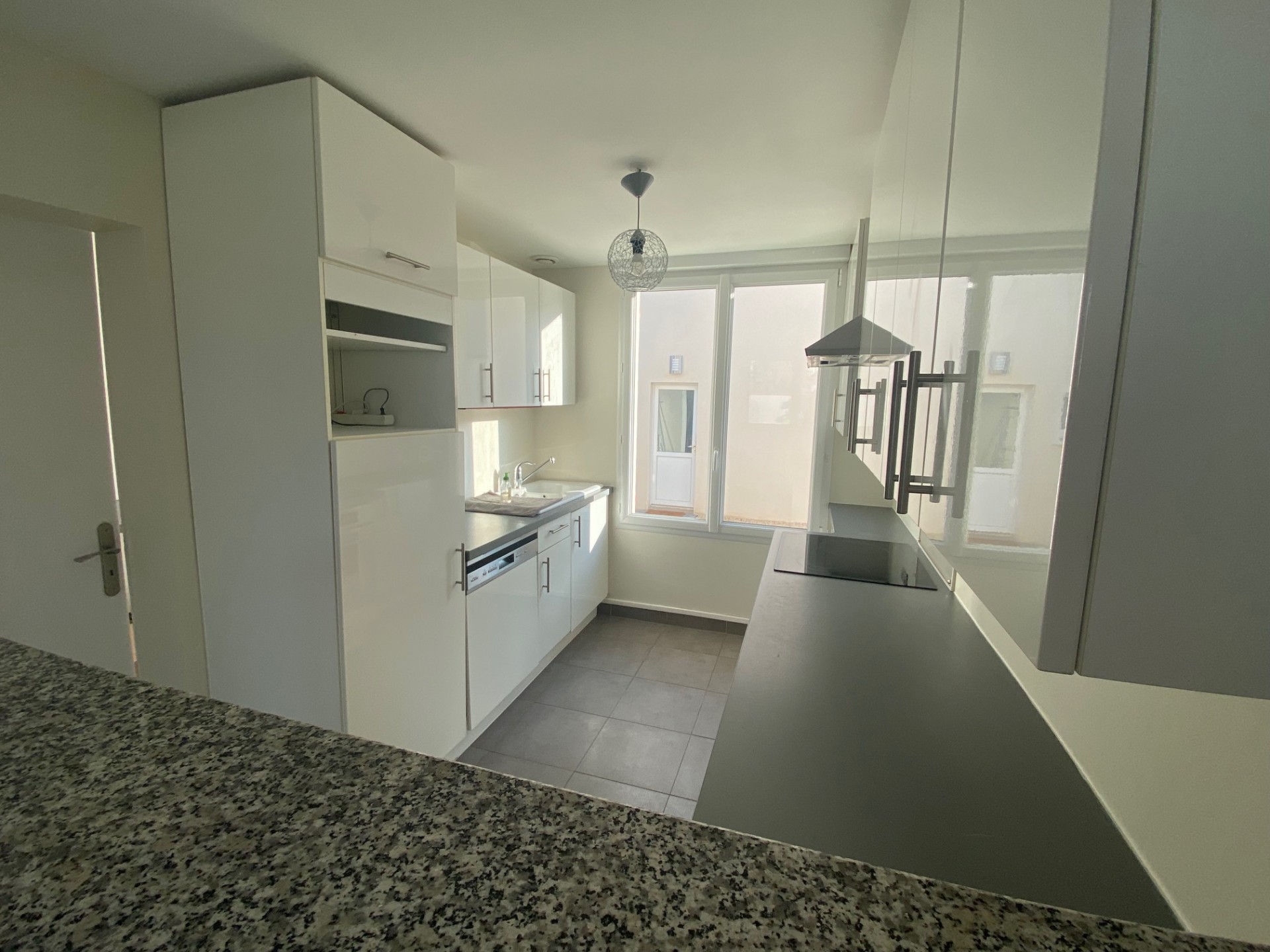 Quartier des Près Mignons, proche commerces et transport, agréable maison de 76,20 m² habitable, comprenant une pièce principale avec insert à cheminée, une cuisine équipée et aménagée (plaque cuisson, hotte, four, lave-vaisselle), une buanderie, une chambre avec une salle d'eau, et un wc séparé. A l'étage : deux chambres mansardées avec placard et une salle d'eau avec wc.
